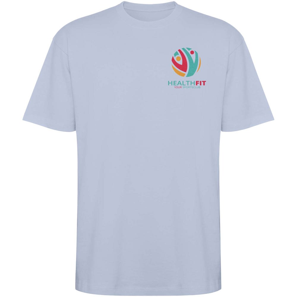 T-shirt à manches courtes oversize. Col rond bordé d'une côte 2x1 avec couvre-coutures assortis....plus