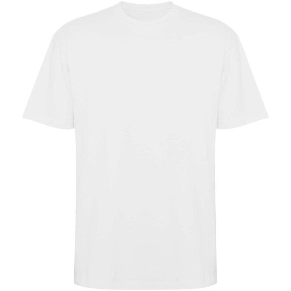 T-shirt à manches courtes oversize. Col rond bordé d'une côte 2x1 avec couvre-coutures assortis. Coutures latérales. Double piqûre large sur les manches et l'ourlet. Étiquette détachable.