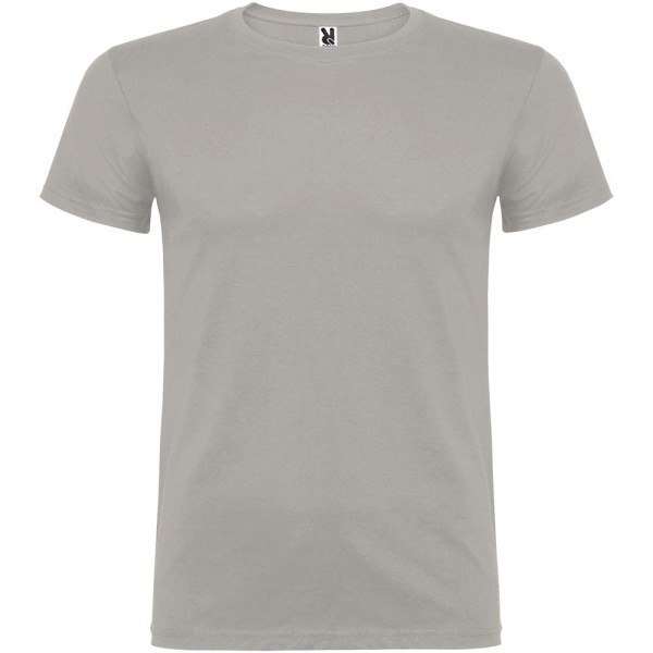 T-shirt à manches courtes avec col rond double épaisseur en élasthanne, confectionné en tissu tubulaire pour adultes. Coutures recouvertes renforcées au col. Étiquette détachable.Le mannequin mesure 190 cm et porte la taille L.