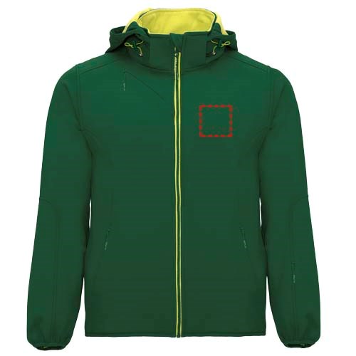 Softshell 2 couches en coupe sport. Fermeture zippée centrale contrastée avec protège-menton et tirette. Doublure intérieure en tissu micropolaire contrasté. Poche extérieure sur la poitrine droite avec fermeture zippée invisible en forme de diagonale. Deux poches latérales avec fermeture zippée invisible. Poche sur la manche gauche. Bordure élastique assortie aux poignets et à l'ourlet. Capuche pliable avec doublure micropolaire contrastée. Étiquette détachable. Imperméable. Coupe-vent. Le mannequin Homme mesure 185 cm et porte la taille M, le mannequin Femme mesure 174 cm et porte la taille S.