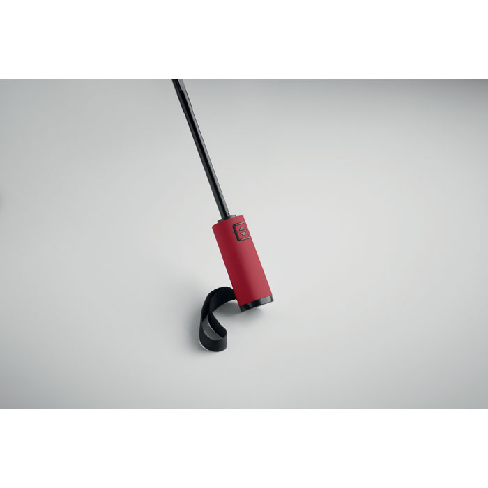 Parapluie de 23'' 3 plis, en pongé RPET 190T pochette assortie. Ouverture et fermeture automatiques, armature entièrement plaquée noire, baleines en fibre de verre, poignée en ABS finition caoutchouc.