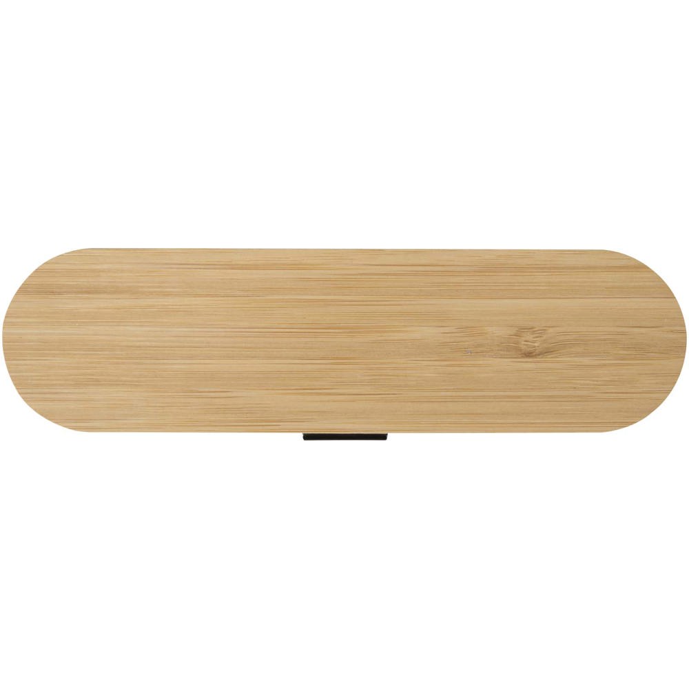 Ensemble de couverts réutilisables comprenant une fourchette, un couteau, une cuillère, une paille et un nettoyeur de paille. Idéal pour les repas à emporter. Compact et facile à nettoyer, il est parfait pour les paniers repas, les voyages ou le bureau. Livré dans une boîte de rangement en plastique avec un couvercle en bambou.