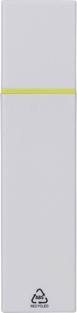 Surligneur en ABS recyclé, corps blanc et attributs colorés. Fermeture à clic et garantie 2 ans contre le dessèchement. Marqué du logo ABS recyclé.