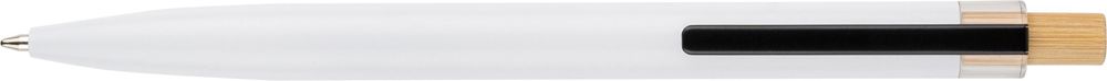 Stylo-bille à poussoir en aluminium recyclé laqué, avec poussoir en bambou, attributs en rPET et clip en métal. Logo recyclé gravé. Longueur d'écriture approximative de 700 mètres. Encre bleue.