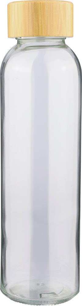 Gourde de 500 ml en verre avec corps givré et bouchon à vis en bambou avec intérieur en PP. Fabriquée en verre sodocalcique, elle convient uniquement aux boissons froides. Emballée individuellement dans une boîte cadeau en kraft.