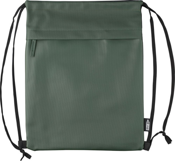 Sac à dos en polyester rPET 600D avec revêtement PU sur la face avant pour une meilleure imperméabilité. Il est doté d'une poche frontale zippée dissimulée et d'un grand compartiment à cordon. Il comprend deux compartiments avec poches frontale et intérieure. Volume : 8 L, charge maximale : 8 kg. Étiquette rPET à l'extérieur et étiquette de traçabilité à l'intérieur.