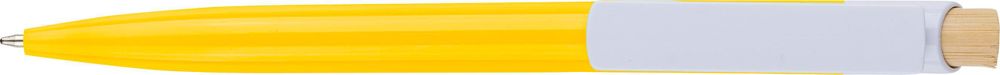 Stylo-bille en ABS recyclé avec bouton-poussoir en bambou et clip blanc. Logo recyclé intégré au...plus