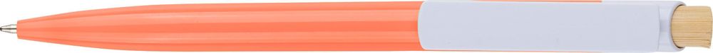 Stylo-bille en ABS recyclé avec bouton-poussoir en bambou et clip blanc. Logo recyclé intégré au...plus