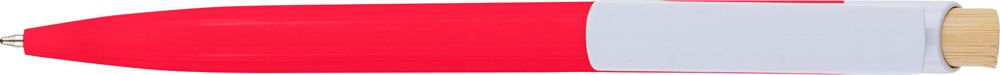 Stylo-bille en ABS recyclé avec bouton-poussoir en bambou et clip blanc. Logo recyclé intégré au...plus
