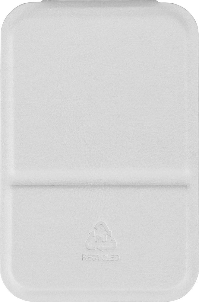 Miroir en verre avec housse pliable en PU recyclé, conçu pour tenir debout une fois ouvert. Format de poche : 70 x 11 cm, disponible en noir, blanc et rouge. Logo recyclé embossé. Emballé dans un sac en papier.