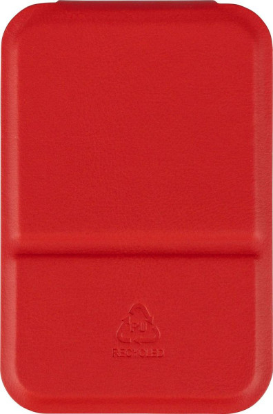Miroir en verre avec housse pliable en PU recyclé, conçu pour tenir debout une fois ouvert. Format de poche : 70 x 11 cm, disponible en noir, blanc et rouge. Logo recyclé embossé. Emballé dans un sac en papier.