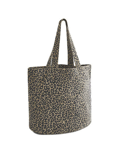 Contient 70% de coton recyclé certifié et 30% de polyester certifié | Finition effet lavé | Imprimé léopard | Base ovale | Poignées de transport en tissu | Peut être porté à la main ou sur l'épaule | Étiquette CutAway pour faciliter le changement de marque | En raison du processus de teinture des vêtements, chaque couleur est unique et peut varier, avec une décoloration potentielle au fil du temps. | Livraison sans décoration/contenu