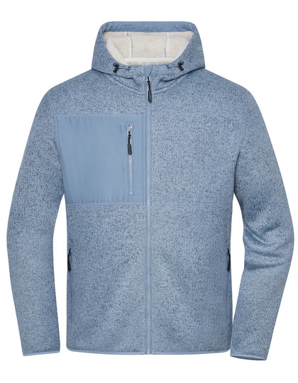 Matière douce et chaude, aspect chiné | Extérieur aspect tricot, intérieur polaire sherpa douillette | Capuche ajustée et réglable | Garniture en tissu tissé de couleur contrastée à l'intérieur de l'ouverture de la capuche | 2 poches latérales avec fermeture éclair, 1 poche poitrine en tissu tissé de couleur contrastée avec fermeture éclair | 2 grandes poches intérieures | Fermeture éclair doublée sur toute la longueur avec protection au niveau du menton | Passepoil de couleur contrastée sur toutes les fermetures éclair | Fermetures éclair : YKK