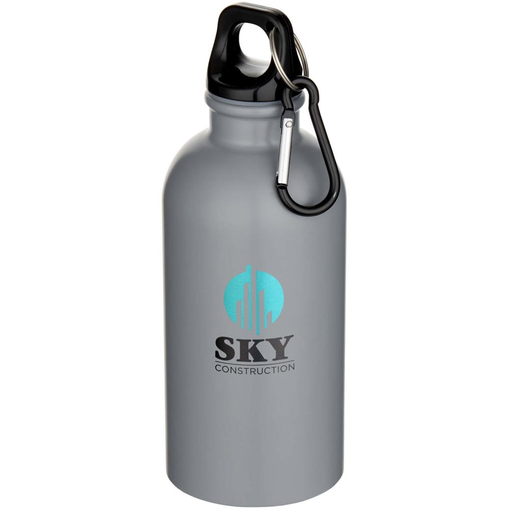 Bouteille d’eau Oregon de 400 ml à simple paroi avec finition MATE, en acier inoxydable recyclé certifié RCS avec mousqueton