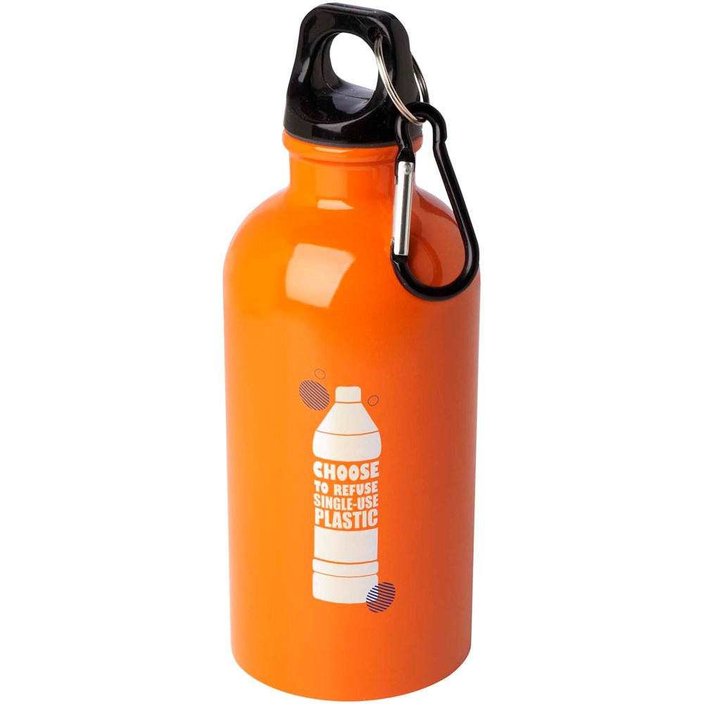 Bouteille d'eau Oregon de 400 ml simple paroi en acier recyclé certifié RCS avec mousqueton