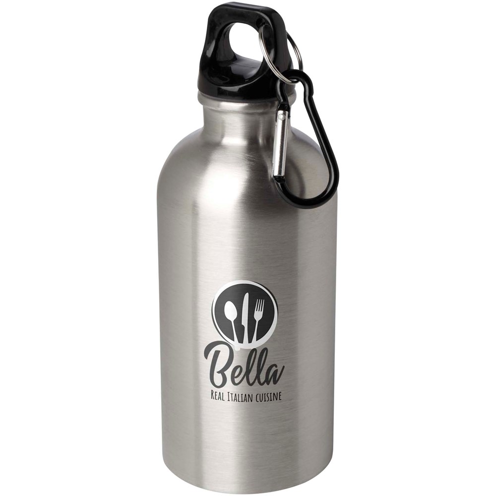 Bouteille d'eau Oregon de 400 ml simple paroi en acier recyclé certifié RCS avec mousqueton