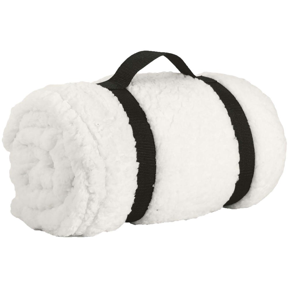 De Poloris deken is gemaakt van 100% gerecycled 350 g/m² polyester (RPET) voor een behaaglijke warmte. Hij kan gemakkelijk worden opgerold en is voorzien van een zwart polyester handvat, waardoor hij perfect is om thuis of onderweg te ontspannen. Afmetingen: 120 x 150 cm. Gemaakt in Europa.