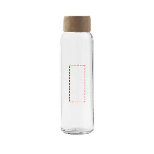 Glazen waterfles met een dop van biologisch plastic, wat deze waterfles een duurzamere keuze maakt. Geleverd in een kartonnen hoes. Gemaakt in Europa. Inhoud: 500 ml.