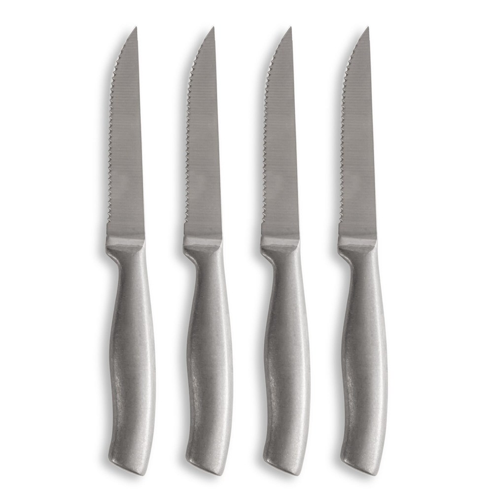 Chaque cuisine a besoin de couteaux à barbecue de qualité supérieure, tout simplement parce que les aliments ont bien meilleur goût lorsqu'ils sont faciles à couper en morceaux de taille moyenne. Les couteaux à barbecue Anton sont élégants, avec une bonne prise en main et une lame tranchante. Fabriqués en acier inoxydable avec une finition finement lavée à la pierre. Présentés dans un attrayant paquet de 4.