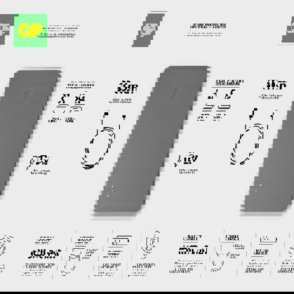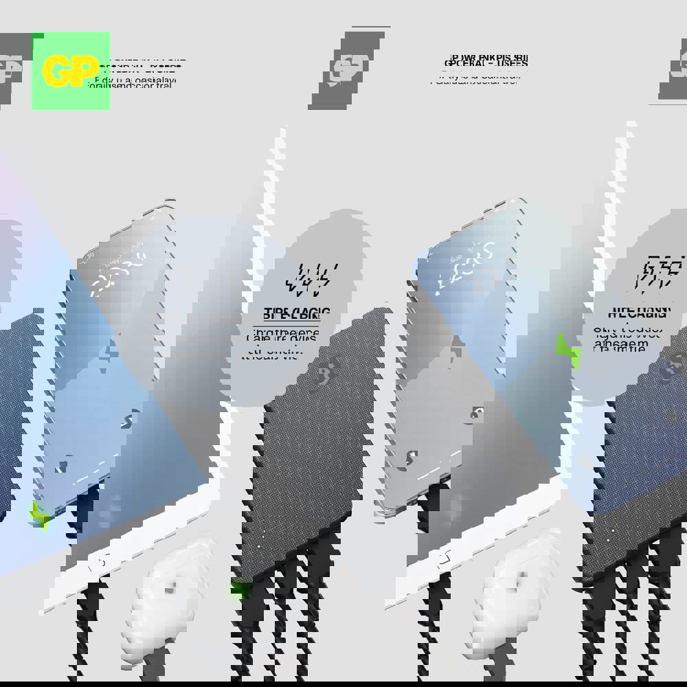 La GP PowerBank associe une alimentation fiable à un design élégant. Avec une capacité de 5000 mAh, il vous permet de charger trois appareils simultanément via 2x USB-A et 1x USB-C. Le power bank est doté d'une protection 8 fois supérieure pour une utilisation sûre et une durabilité à long terme garantie. Idéal pour une utilisation professionnelle et quotidienne.
