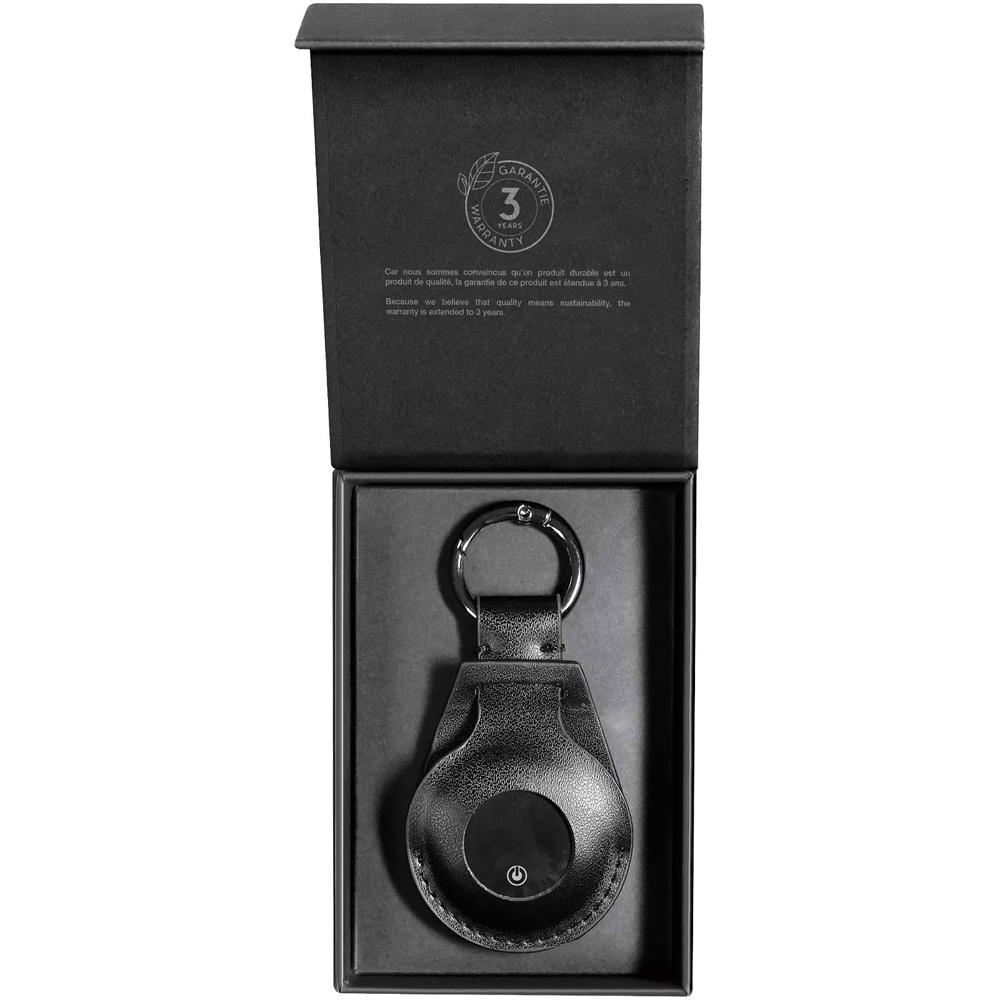Tracker-sleutelhanger om je spullen bij de hand te houden en snel te kunnen vinden. De stevige sleutelhanger kan eenvoudig worden bevestigd aan sleutels, een halsband voor huisdieren, tassen of elk ander voorwerp dat je wilt volgen. Compatibel met zowel het Find My®-netwerk van Apple als het Find My Device®-netwerk van Google, maakt verbinding via Bluetooth® en kan worden gevonden in de native app. Zelfs als je buiten het Bluetooth®-bereik bent, kun je deze nog steeds vinden via het mesh-netwerk van Apple- of Android-apparaten in de buurt. Hij biedt een batterijduur tot 6 maanden met een vervangbare batterij van 210 mAh en wordt geleverd in een geschenkverpakking van gerecycled karton.